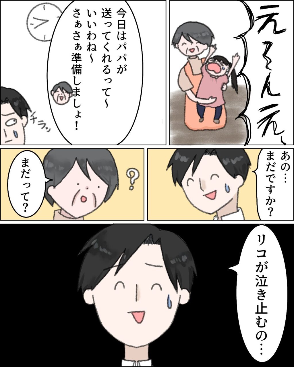 「リコが泣き止むのを待ってた」準備してくれたら保育園に送っていく