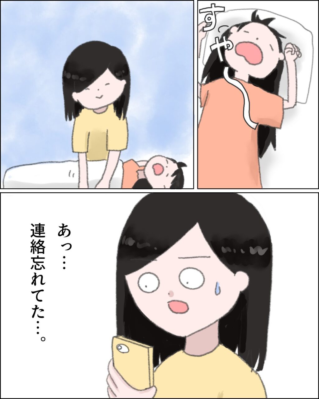 その後、リコを寝かしつけた私は、数時間ぶりにスマホを見てカズヒデからのメッセージに気付きました。