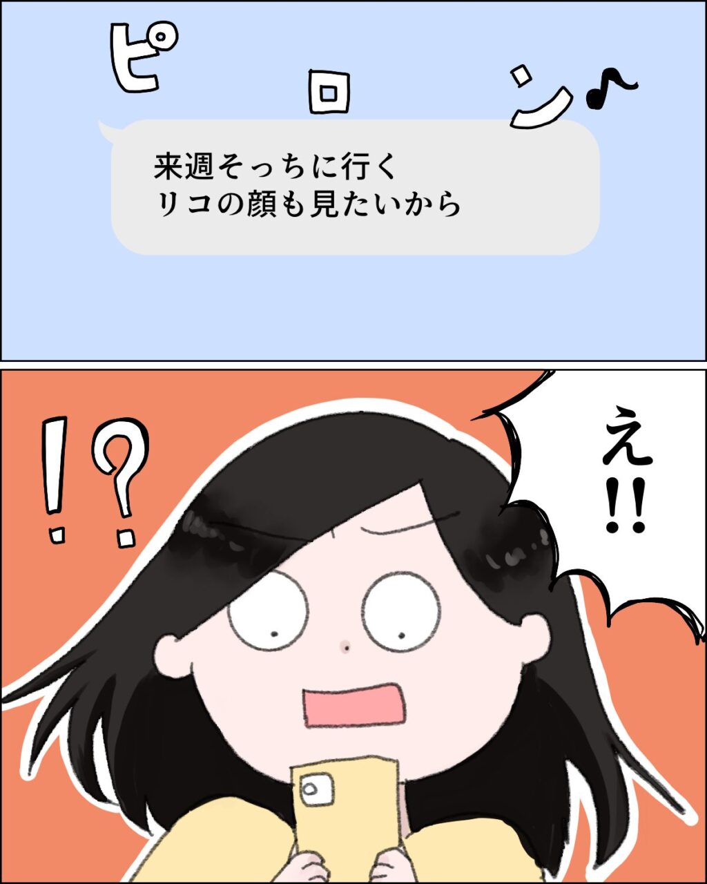 『来週そっちに行く。リコの顔も見たいから』カズヒデから届いた予想外のメッセージに私は思わず「え!!」と驚きの声をあげました。
