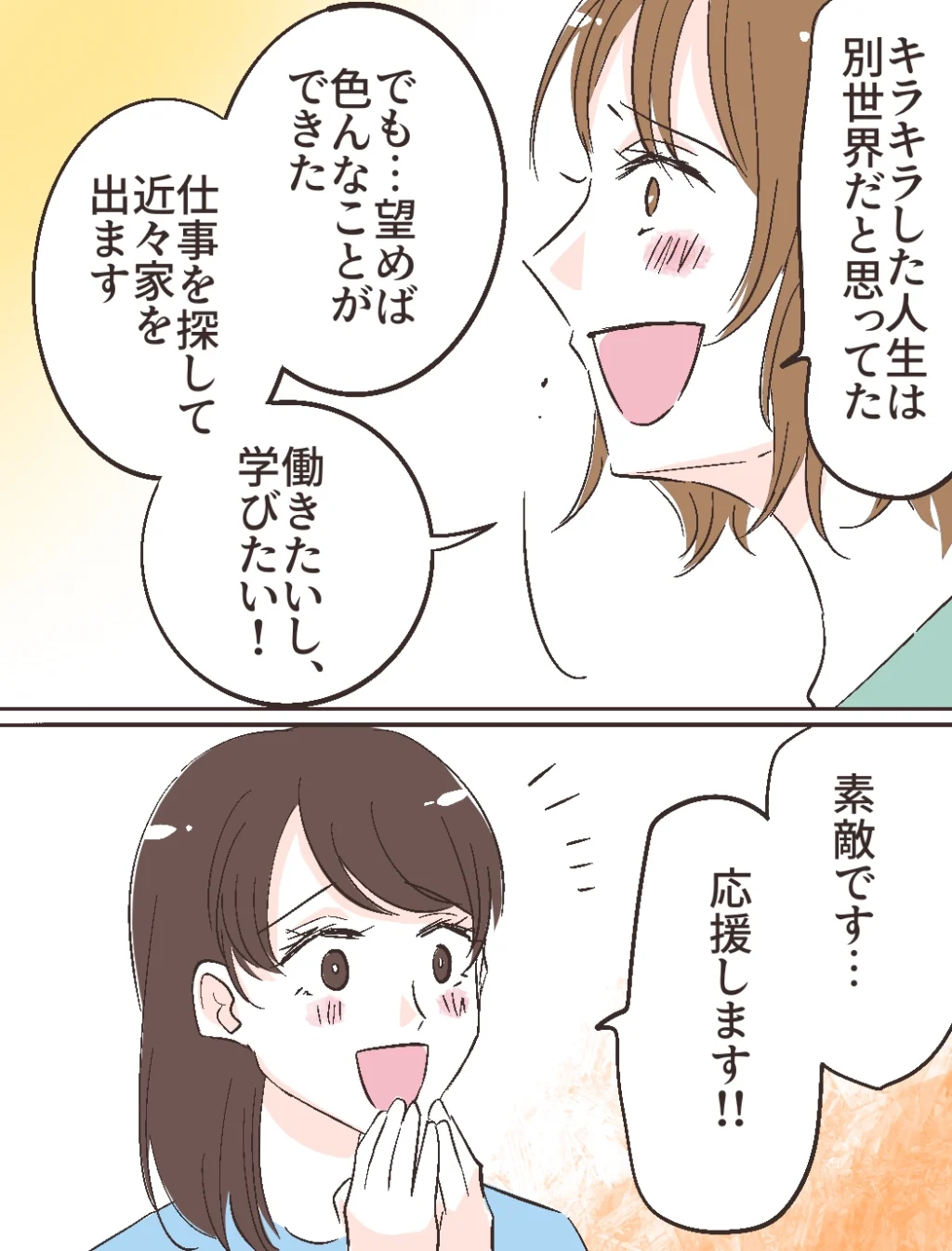 これまでの境遇に縛られ、「自分は一生このまま生きていくしかない」と思い込んでいた智美さん。しかし、ふみのさんがそっと背中を押したことで、望めば世界は広がるし、選択肢はいくらでもあるのだと気づいたようです。智美さんは、ただ外の世界を知らなかっただけ。家を出れば、自分のことはすべて自分でやらなければいけないし大変です。それでも殻に閉じこもっていた頃より、ずっと自由で楽しい毎日が待っているはず!