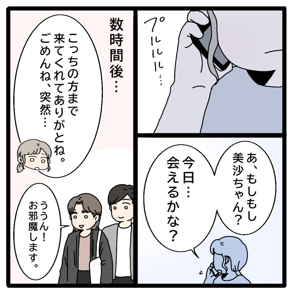 「ううん、2人とも仕事終わりなのにごめんね、ちょっと1人で抱えきれないことがあって」そう言って、私は早速正志の話を切り出そうとしました。すると美沙ちゃんが、少し考え込むような表情をして「それは全然いいんだけどね・・・」と口を開きます。