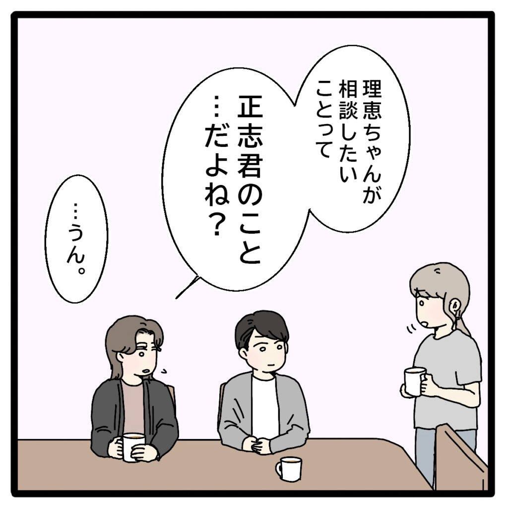 「理恵ちゃんが相談したいことって、正志くんのこと・・・だよね?」やっぱり2人は正志のこと、何か知っているんだ。私は2人の目をまっすぐ見つめると、静かに「・・・うん」と頷きました。