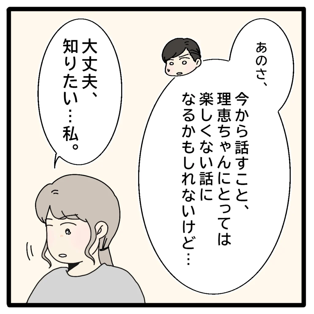 正志の同級生裕二さんと妻美沙さんは、正志のことで私が悩んでいると気づいていたようでした。そして裕二さんは、「理恵ちゃんにとっては楽しくない話になるかもしれないけど」と前置きしたうえで子どもの頃からの地元での話をしてくれました。