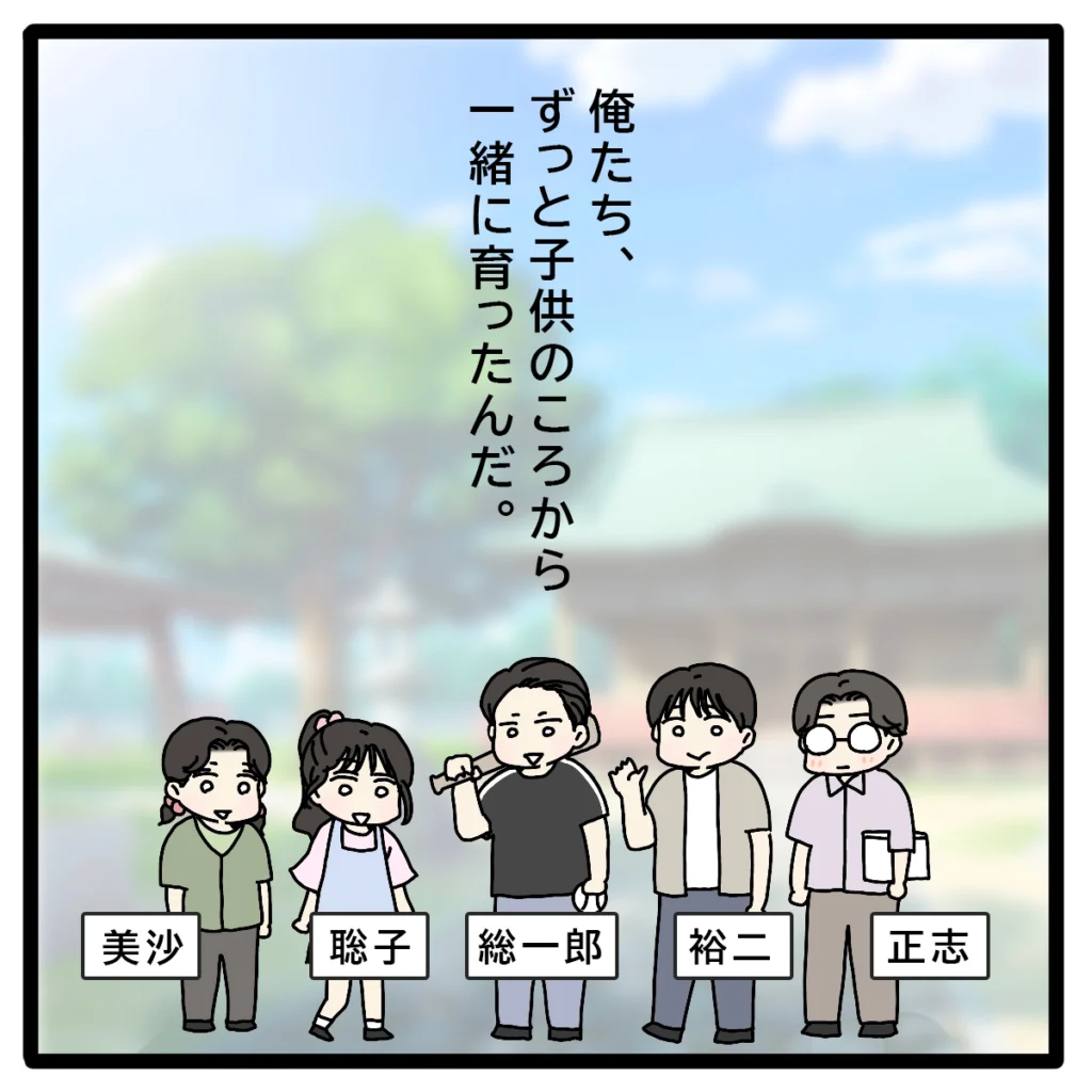 聡子さんのお兄さんである総一郎さんと裕二さん、正志は同級生。そして聡子さんと美沙さんは同級生でした。正志の地元の人たちはみんな顔見知りで、みんな子どもの頃からずっと一緒に育ったそうです。