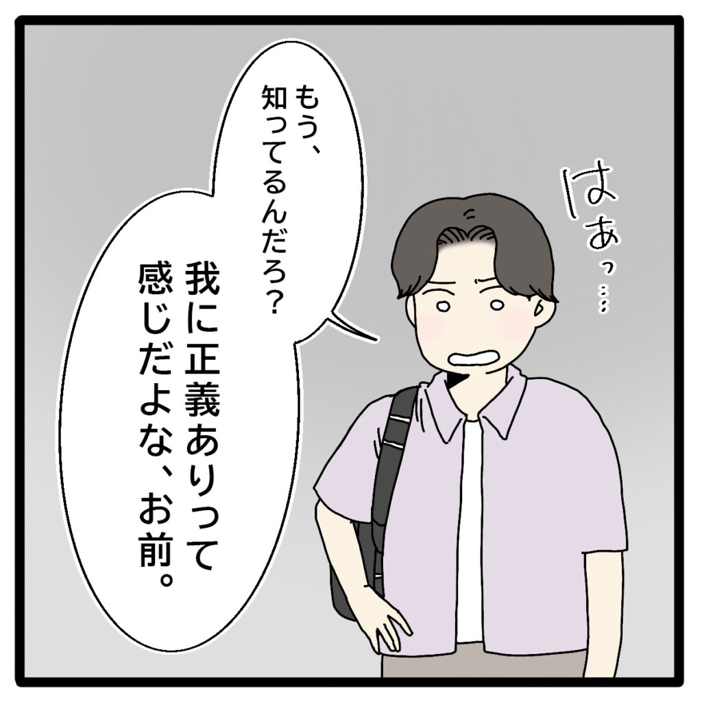 正志は大きくため息をつくと「もう、知ってるんだろ?我に正義ありって感じだよな、お前」と投げやりに言いました。まるで自分が正義だと言わんばかりの態度に、私はただ呆れるしかありませんでした。