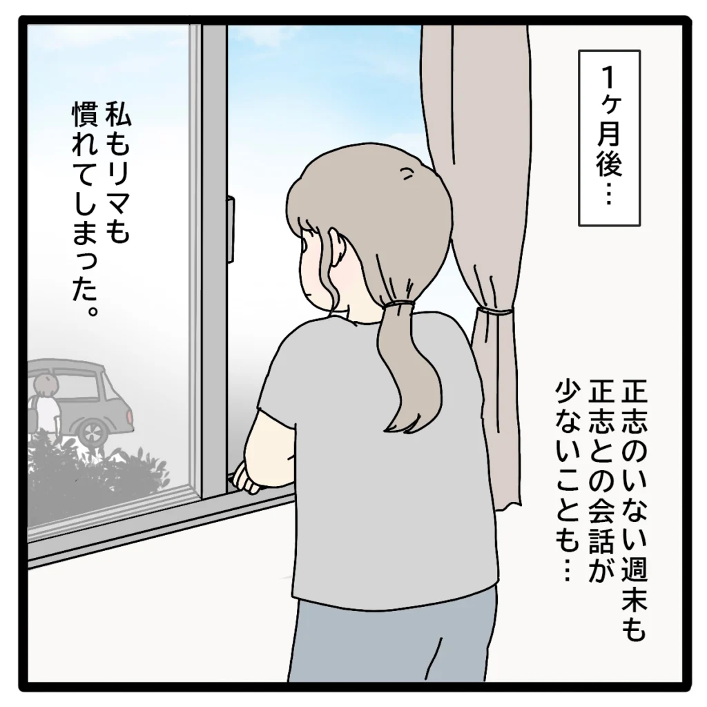 それから1ヶ月後。正志のいない週末も、正志との会話が少ないことも、私もリマも慣れてしまいました。今はただ、私たちに生活費を入れてくれるだけの存在。家族で会話することも、一緒に遊びに行くことも、一切なくなりました。