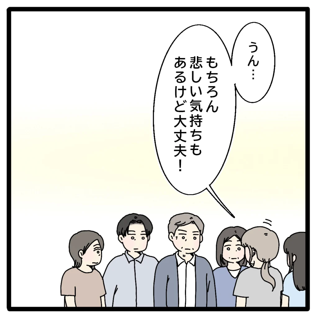 「うん・・。もちろん悲しい気持ちもあるけど大丈夫!」私は強がりでもなんでもなく、素直にそう答えました。