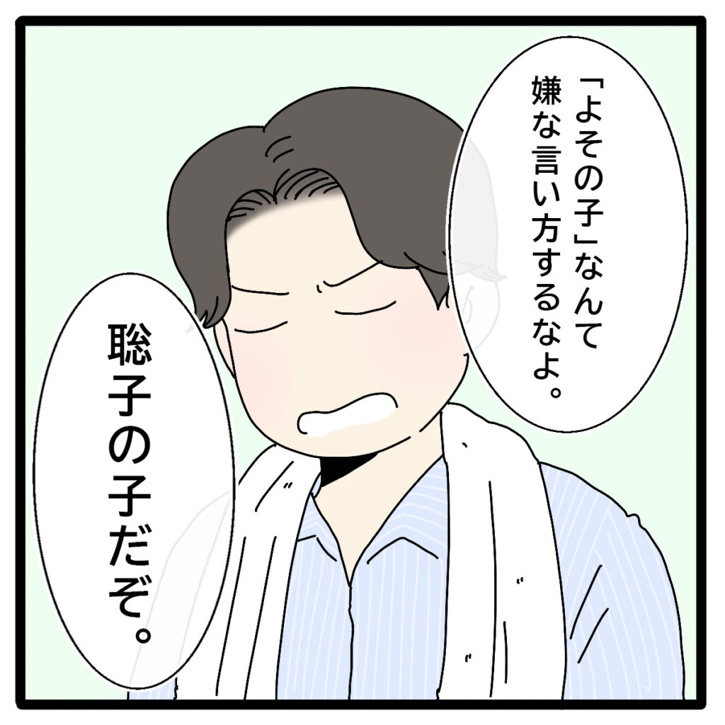 「『よその子』なんて嫌な言い方するなよ。聡子の子だぞ」と怒りながら言い返す正志。