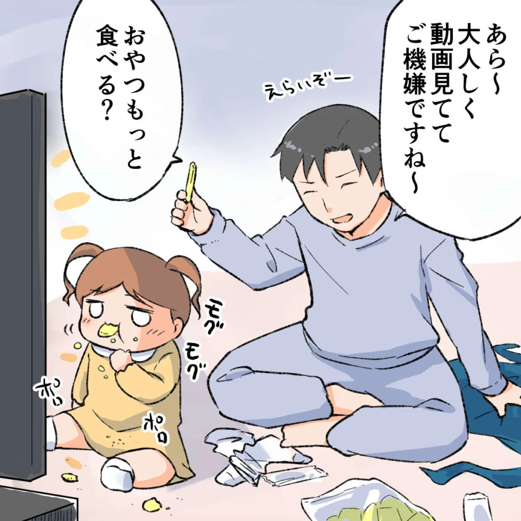 床にゴミや食べカス、脱ぎっぱなしの服が散乱していても、本人は洗濯と夕食作りをしただけで、家事を完璧にこなしたつもりになっているなんて呆れます。しかも、さくらちゃんに量も考えずお菓子を与えるなんて、ゆきのさんがこの状況を見たらショックで倒れてしまわないか心配です。
