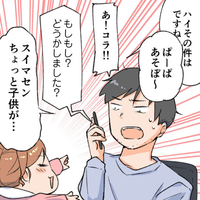 また別のこと。オレが電話中で、「ハイ!その件はですね・・」と答えようとしたところ、「ぱーぱあそぼ~」さくらちゃんが大きな声で言いました。「すいません、ちょっと子どもが・・」と何とか謝るオレ。