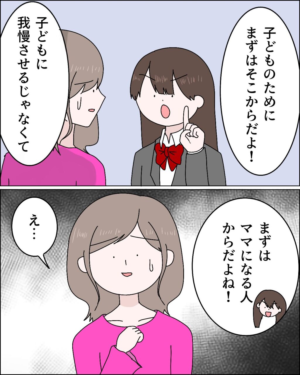 「子どものためにまずはそこからだよ!子どもに我慢させるんじゃなくて、まずはママになる人からだよね!」とジュリちゃんに言われ、エリカさんは「え・・」と戸惑いの表情を浮かべます。