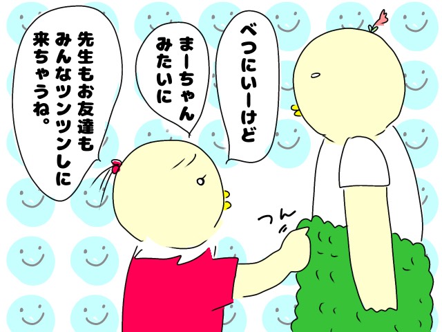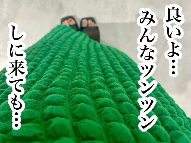 みんながツンツンしに来るかも。ポコポコ生地のスカートを履く母を心配する3歳娘|アツアゲの育児絵日記