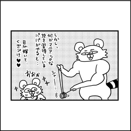 食いつきが半端ない!珍しく息子の興味を引いたパパのスゴ技|ぽこたろー育児漫画 2021年04月26日 ハイパーヨーヨー世代 ドヤ顔のパパ。 この記事をSHAREする この記事のカテゴリー マンガ子育て幼児