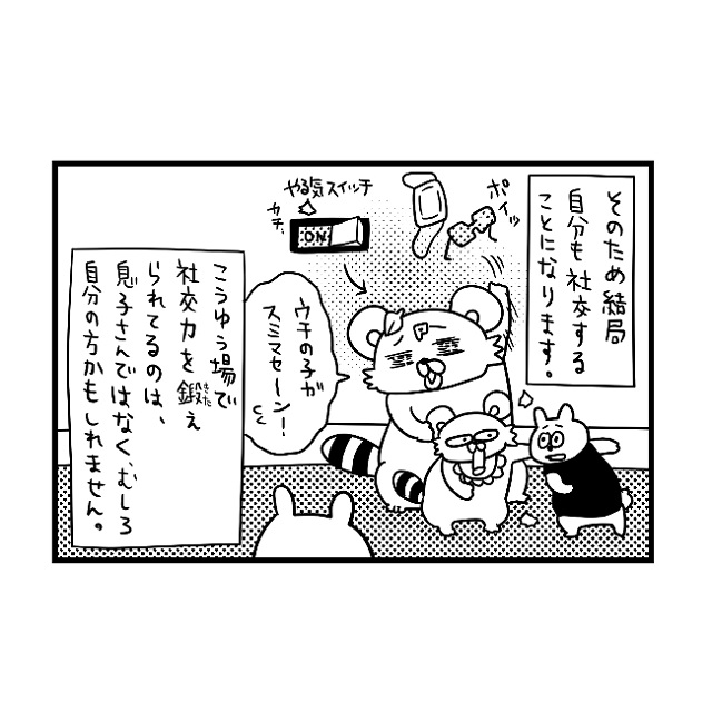 強制的にスイッチON!!(汗)コミュ障の親の社交やる気スイッチ|ぽこたろー育児漫画