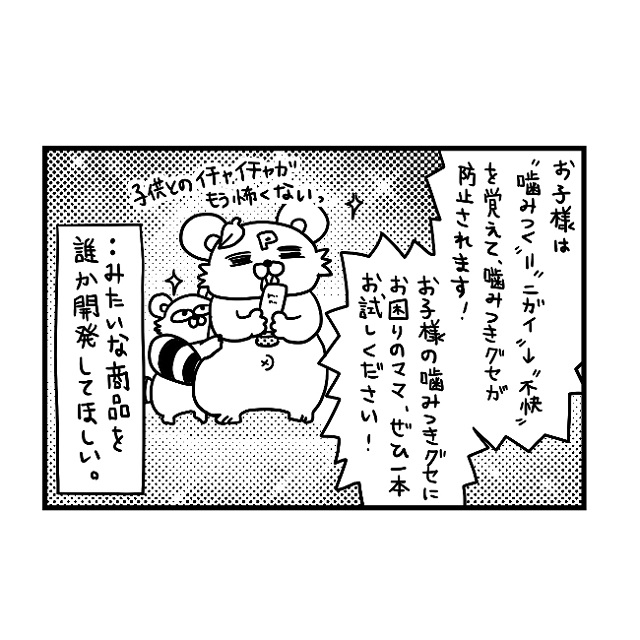 開発求む!!子どもの噛みつき癖に悩むママの脳内希望商品|ぽこたろー育児漫画