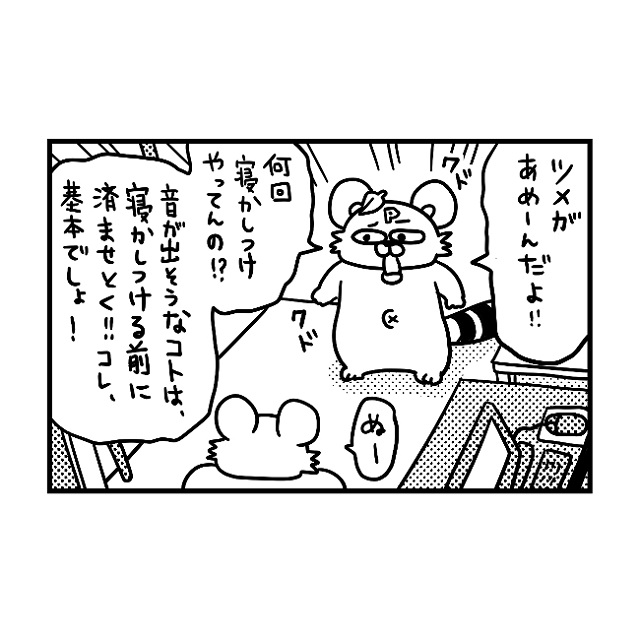旦那よ、肝に銘じてくれ。寝かしつけ後は物音厳禁!!事前準備と状況把握は基本です。|ぽこたろー育児漫画 2021年11月08日 説教 忍びの一族に入門するつもりでやっていただかないと!! ぽこたろー WEBマンガ、イラスト等の絵仕事をしているママです。2018.4月に息子さんを出産。 Twitter:ぽこたろー(@pokotaroooooo) この記事をSHAREする この記事のカテゴリー マンガ子育て幼児