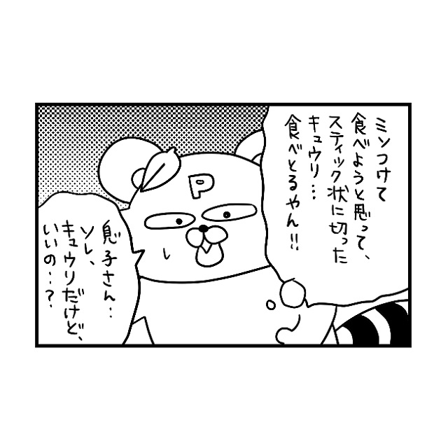 か、噛んでるだけ・・?生のキュウリを口に入れて噛むことが出来るなら後は飲み込むだけの気がしますが・・(汗)そこを飲み込まないのが息子くん!なんでしょうか(笑)それにしても・・・きゅうりにお味噌付けて食べるの美味しいですよね!無性に食べたくなってきました(笑)