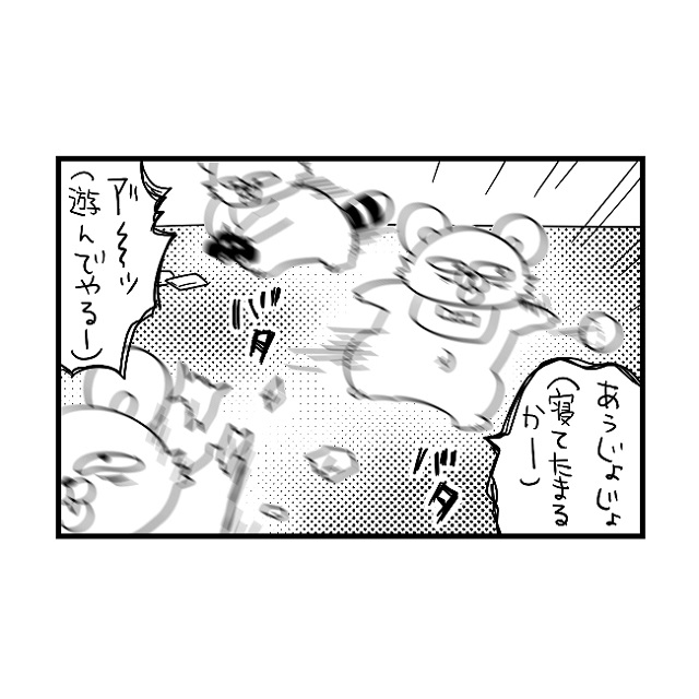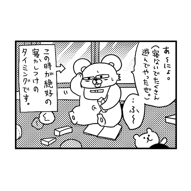 遊ぶ時間が減って悔しい(笑)息子くんらしくておもしろいです!これだけ遊べば大満足で眠ってくれそうですもんね。ぽこたろーさんのタイミング・・最高です(笑)