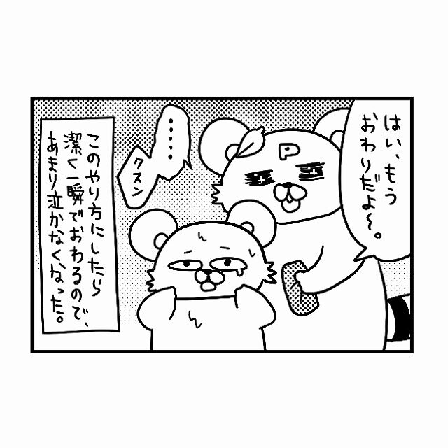 泣いてしまうかな?と思ってゆっくり丁寧にするほうが、かえって怖がってしまうのか、大泣きされ、時間もかかってしまうこともしばしば。