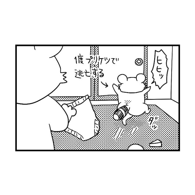 歩いたり走ったりできるようになるとオムツ替えがさらに大変になりますよね。ぽこたろーさんの息子くんも逃亡の常習犯のようですが・・・?