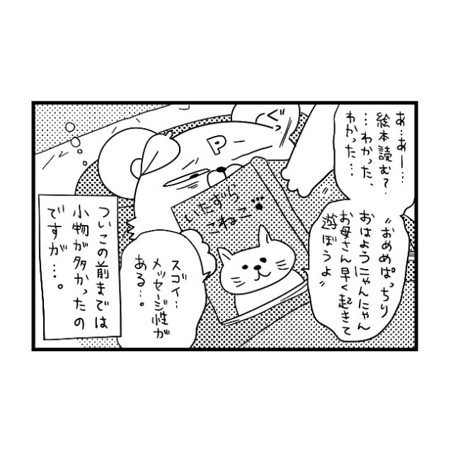 息子くんが1歳の頃、朝なかなか起きられないぽこたろーさんに対し、早起きな息子くんは先に起きてぽこたろーさんのお布団に色々なものを運んできて・・・?