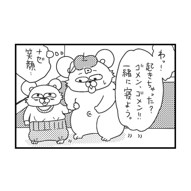 息子くんを寝かしつけてからお仕事をしていたぽこたろーさん。すると、寝ていたはずの息子くんが現れて・・・?