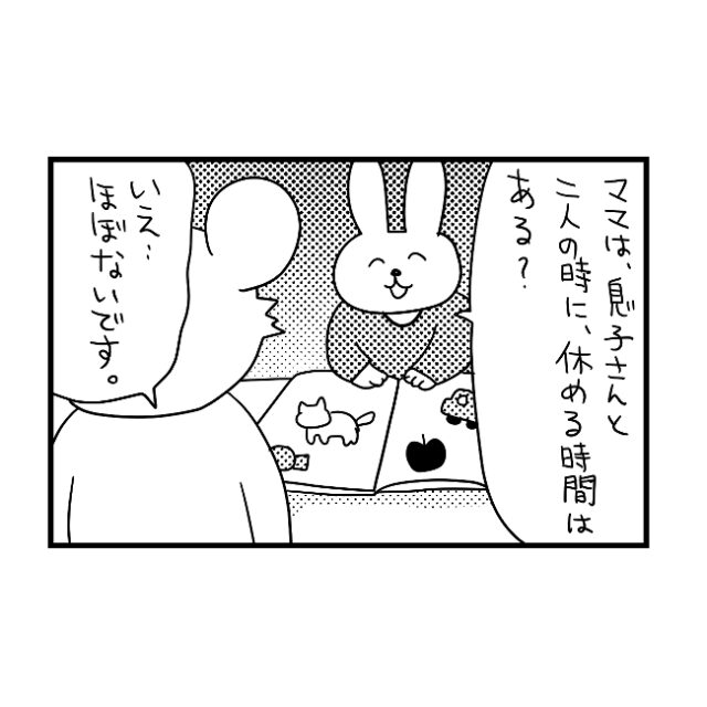息子さん、元気元気!逃亡が素早すぎて画面に入り切れていないほどです(笑)。ママの休憩は確かに必要かもしれませんね。