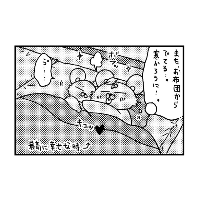 一緒に布団に入る瞬間幸せですよね~!あらら、息子くん瞬時に脱走!パパにひっついて暖をとってるんですね(笑)
