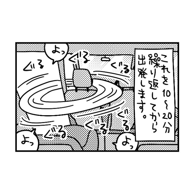 これが長男くんのルーティーン(笑)20分もぐるぐる、ぐるぐる・・・お出かけ前にママはぐったりしてしまいそうですが、安全のためには必要ですもんね!
