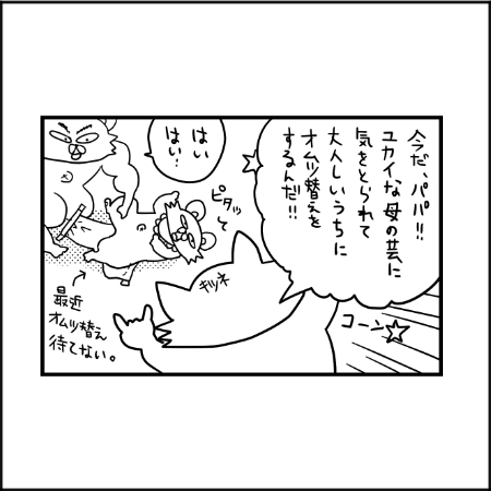 今がチャンス!…ママの愉快な芸にパパまで夢中!?|ぽこたろー育児漫画 2020年11月29日 今がチャンス!…ママの愉快な芸にパパまで夢中!? パパも夢中。 この記事をSHAREする この記事のカテゴリー 子育て幼児