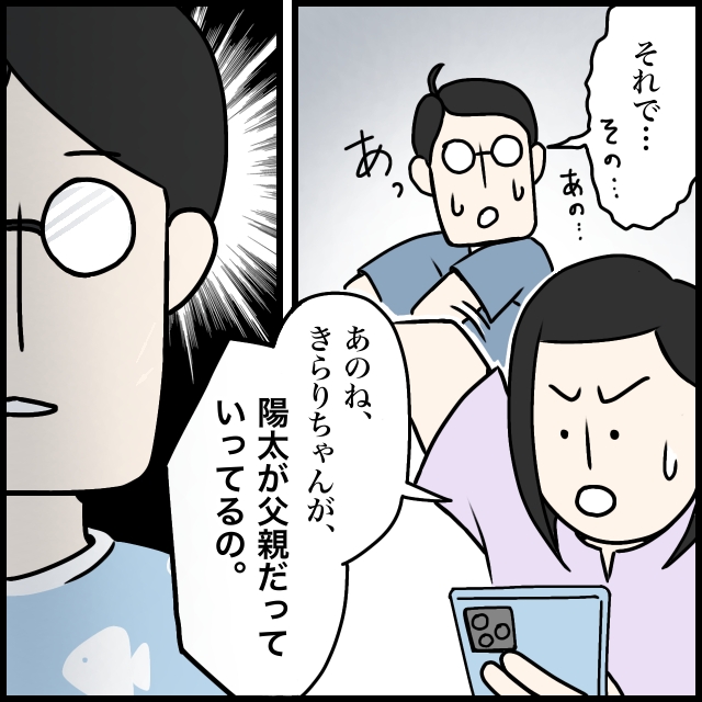 そこで私は「きらりちゃんが、陽太が父親だっていってるの。」と核心をズバリと言いました。もちろん陽太がなんと答えるのかと思うと、心臓が飛び出しそうでした。