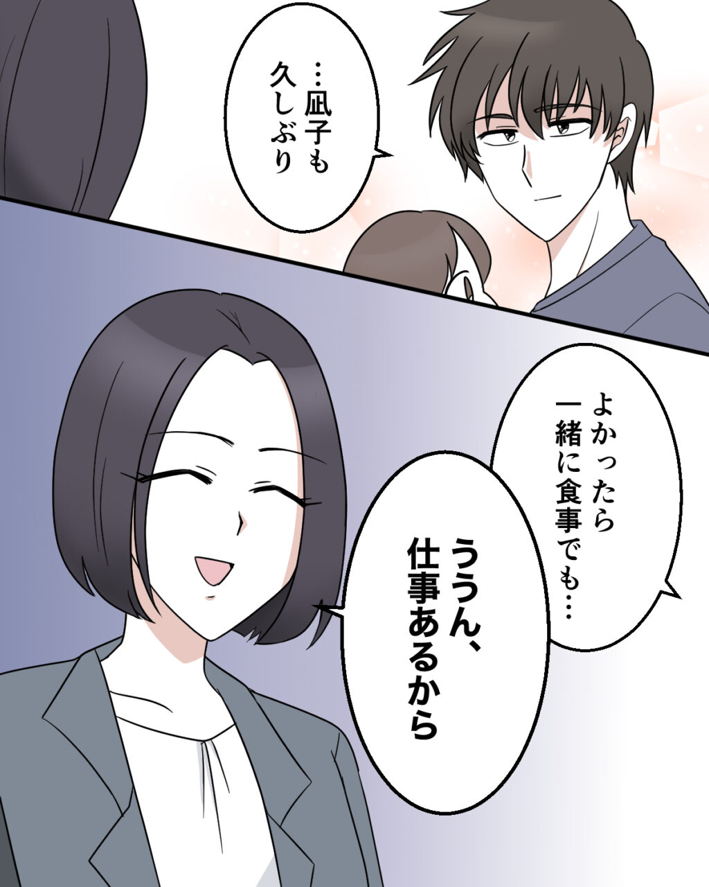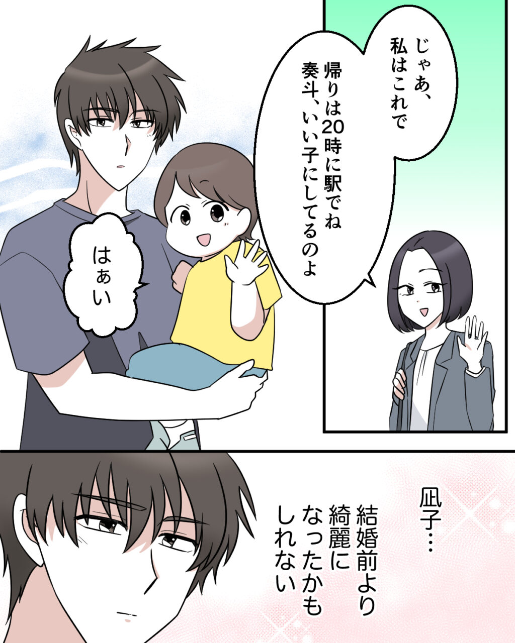 「・・凪子も久しぶり。よかったら一緒に食事でも・・」いつも奏斗を連れてきてすぐに帰ってしまう凪子にそう声をかけてみましたが、「ううん、仕事あるから」と笑顔であっさり断られてしまいました。