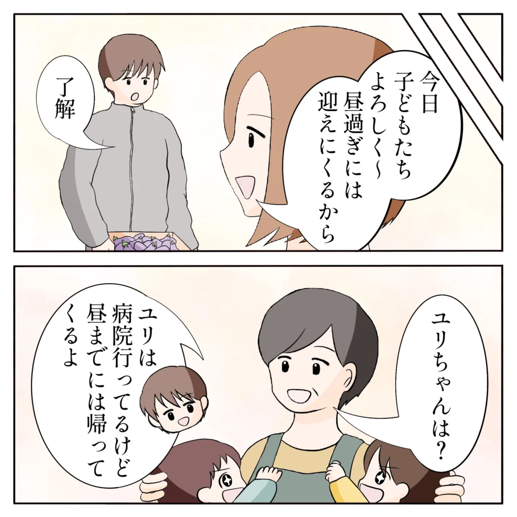 ある日の週末、いつものようにパートに出かける姉ちゃんが子ども達を実家に預けに来ました。「今日子どもたちよろしく~。昼過ぎには迎えに来るから」と言う姉ちゃんに「了解」と返事をしていると、母さんが「ユリちゃんは?」と聞いてきたので、病院に行っていることを伝えました。