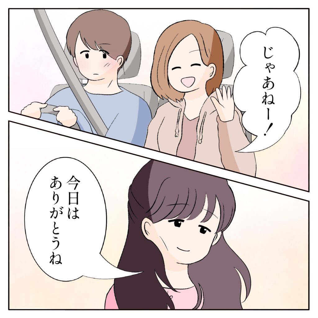 そして、「じゃあねー!」そう言って姉ちゃんが手を振ると、「今日はありがとうね」と話すユリさん。もうお別れなのかと思うと、ちょっぴり寂しくなりました。