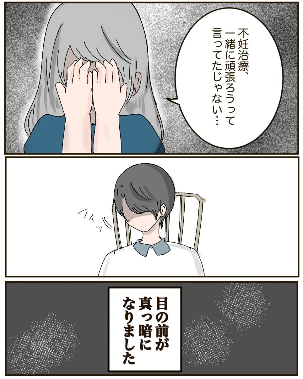 「不妊治療、一緒に頑張ろうって言ってたじゃない」夫の裏切りに心が折れそうになりながら言いましたが、つかさは無言で視線を逸らせるのみ。目の前が真っ暗になりました。