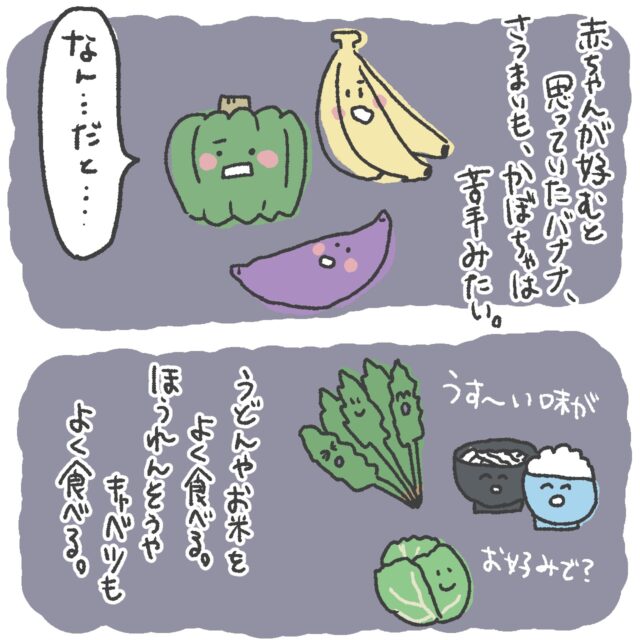 赤ちゃんが好むと思っていたバナナ、さつまいも、かぼちゃは苦手みたい。