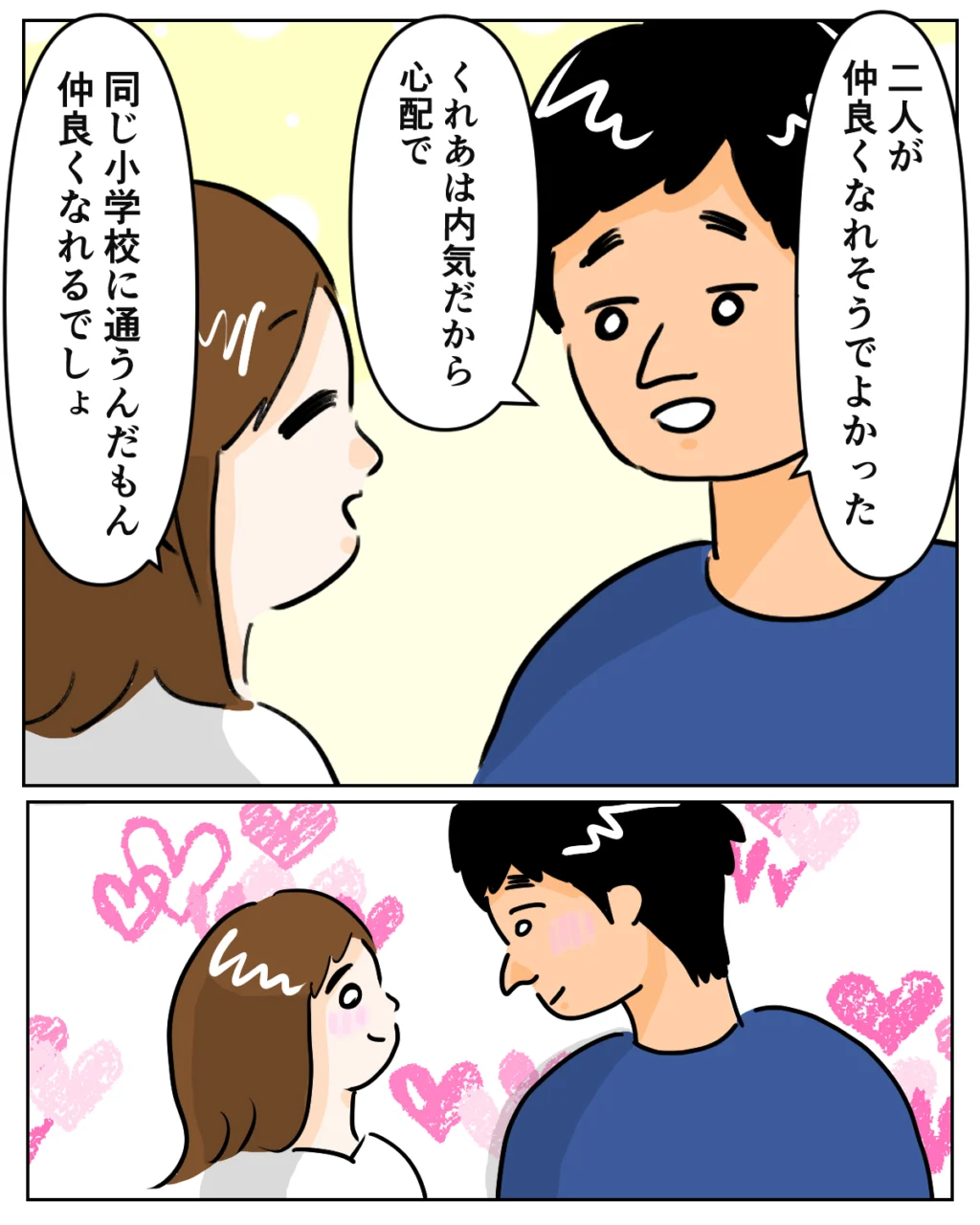 達夫さんも同じ気持ちだったようで、「2人が仲良くなれそうでよかった」と言ってくれました。内気なくれあちゃんのことが心配だったようです。愛花はくれあちゃんの通う小学校へ転校したので、これからは一緒に通えます。きっと仲良くなれるはずだと私は思いました。