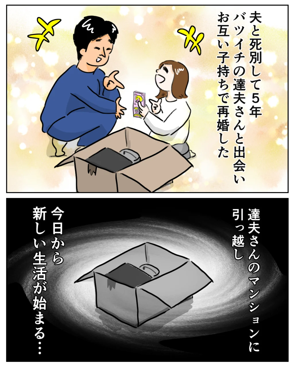 再婚した達夫さんのマンションへ引っ越して来た私。娘愛花と2人の荷物を運ぶのを手伝ってくれた達夫さんが、照れたように笑って「お疲れ」と言ってくれました。今日から私たちの新しい生活がここで始まるのです。「今日からよろしくお願いします。」と言うと私も顔が熱くなるのを感じました。