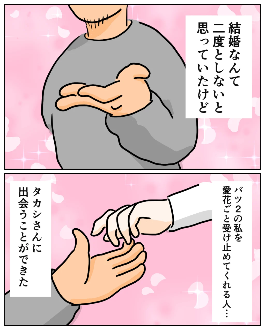もう結婚しないと思っていましたが、ひとりの男性を出会いました。バツ2の私のことや愛花のことを気にかけてくれる大切な人。最初は友達のひとりとして付き合っていましたが、愛花の勧めもあり、付き合うことになりました。