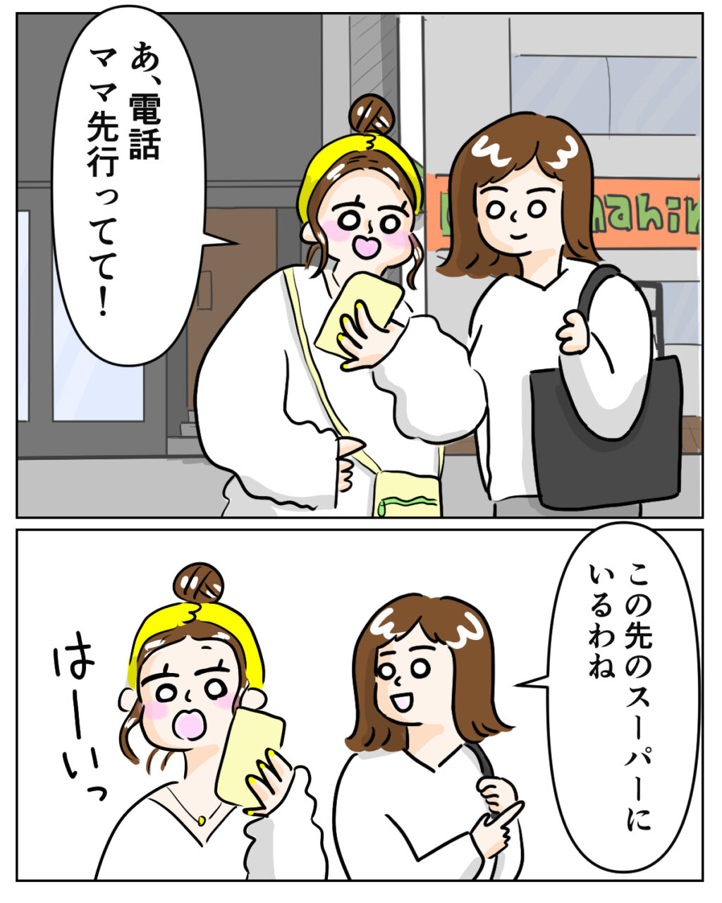 スーパーに寄って帰ろうとすると愛花に電話が。「先に行ってて!」と言われ、私は先にスーパー行くことにしました。愛花と別れ歩いていたその時です。
