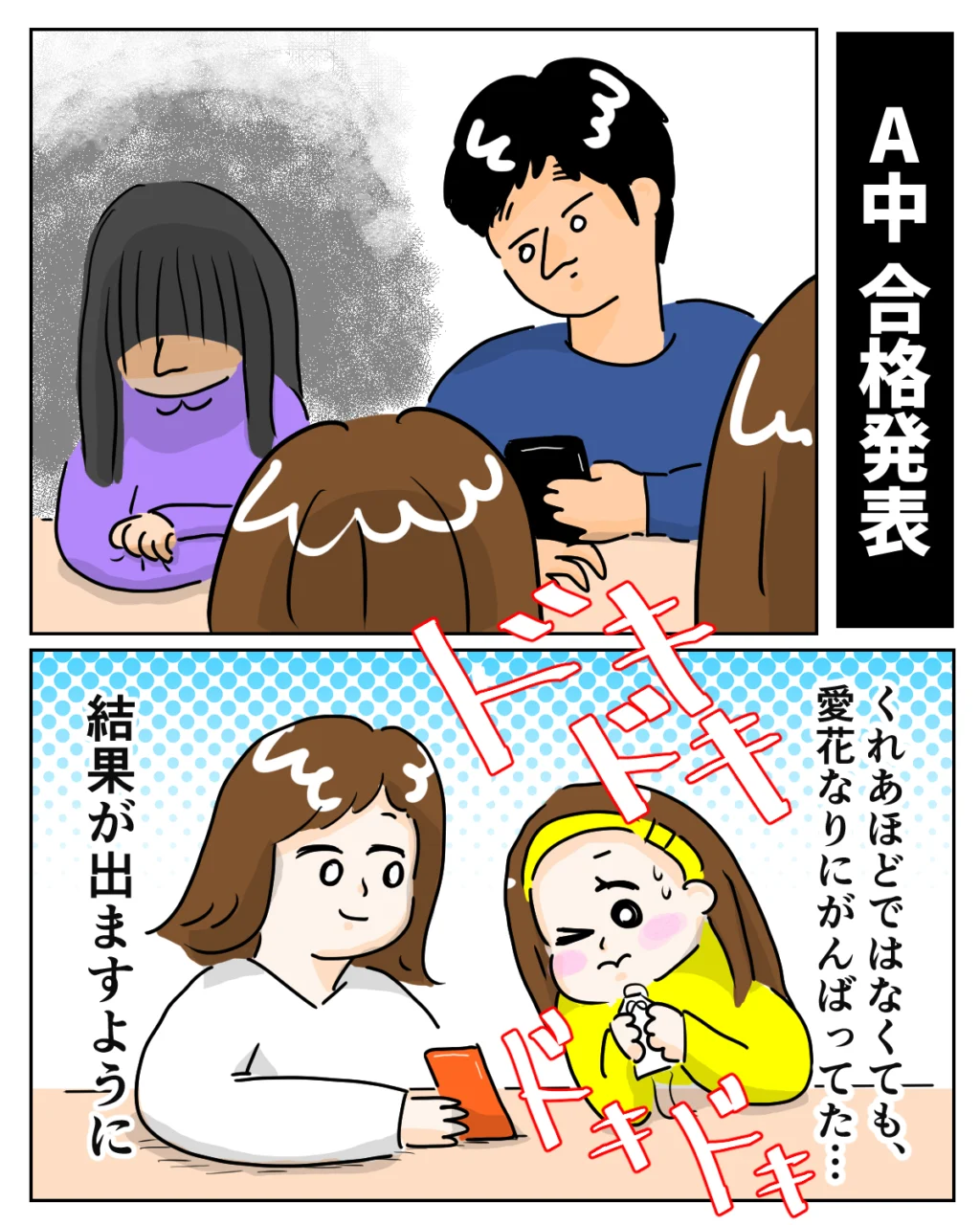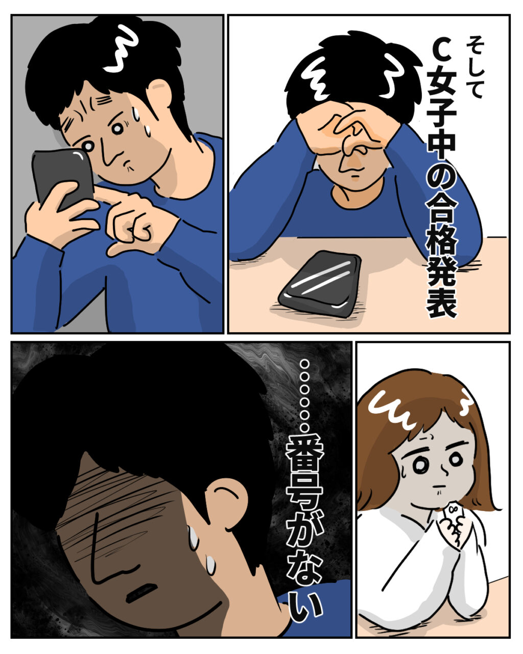 A女子中の合格発表の日。達夫さんはくれあの結果を、私は愛花の結果を、それぞれスマホで確認することに。くれあほどではないかもしれないけれど、愛花も自分なりに精一杯努力してきました。どうか良い結果でありますように・・・私は祈るような気持ちで、受験結果に目を凝らしました。