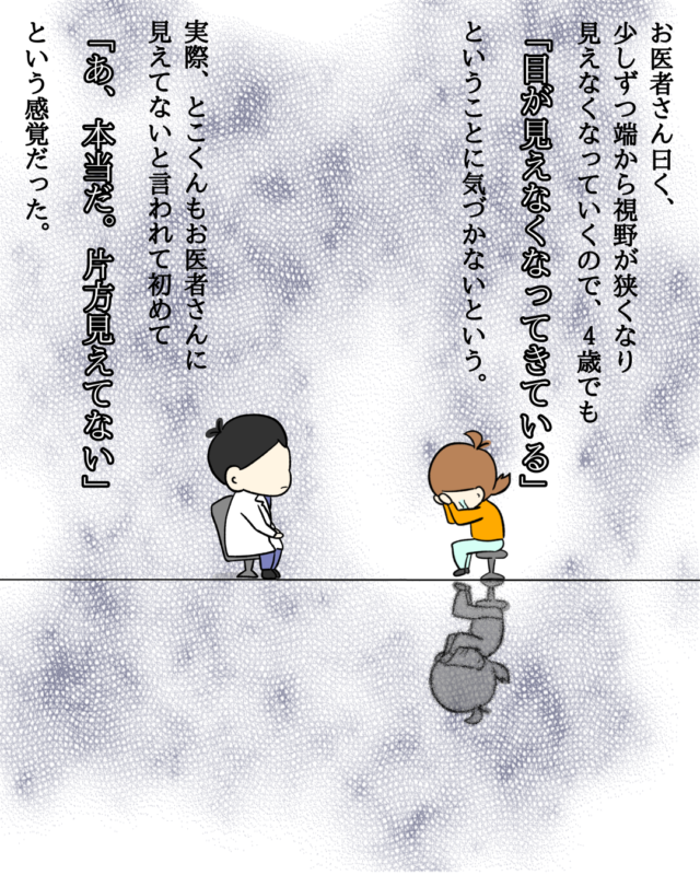 5歳の男の子とこくんを育てているママさんから、とこくんの目のお話です。脳に腫瘍ができ右目の視力を失っても、いつも笑顔でたくましく生きるとこくんです。