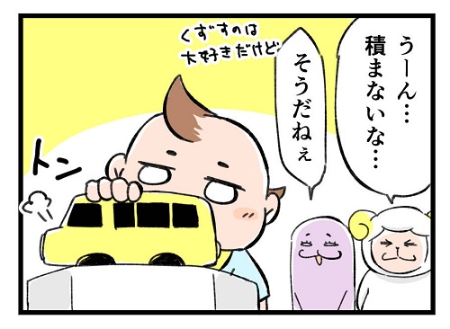 この時点では積み木は積もうとせず、遊び方も良く分かってなかったようです。