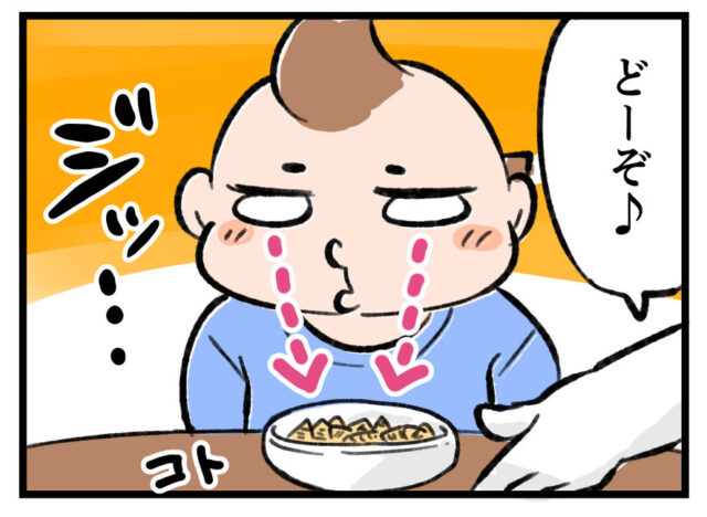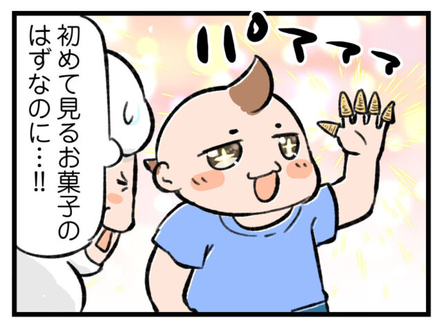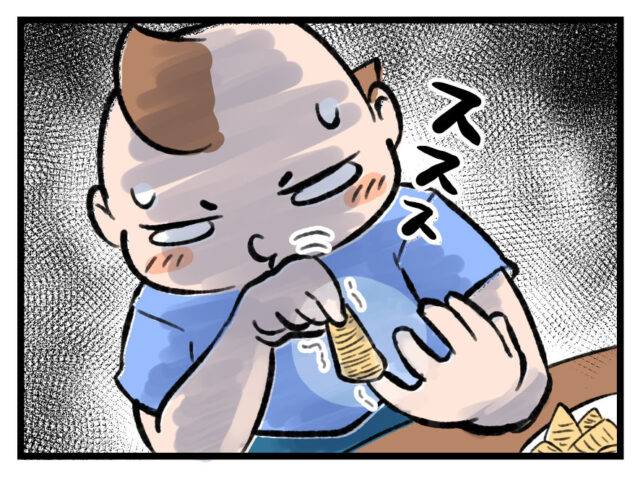 3歳の男の子ゆう坊くんのパパである左近寺しゅうり(@sakonji3)さんは、ブログやTwitterで作品を公開しています。今回はゆう坊くんが2歳11ヶ月の時のおやつタイムのお話です。三角コーンの形のあのお菓子。ゆう坊くんは初めて見たようですよ。美味しく食べられるかな?