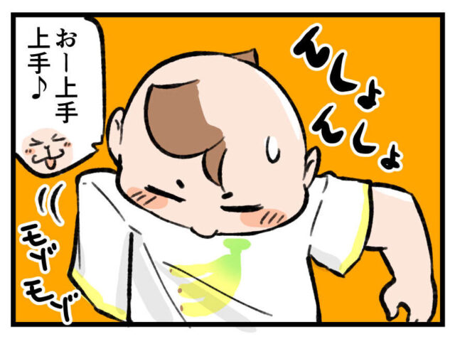そのドヤ顔なんなん(笑)一人でお着替えの練習に余裕すら感じる3歳息子