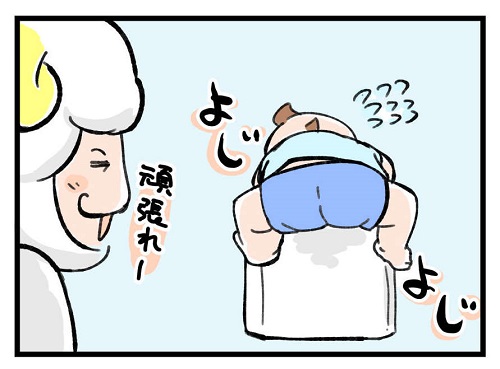 やり切った感だしてるけど…(笑) 踏み台に登った1歳児、その後は?