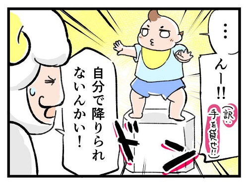 やり切った感だしてるけど…(笑) 踏み台に登った1歳児、その後は?|左近寺しゅうりの育児漫画