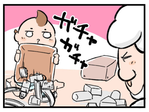 探し方がワイルド~(泣)2歳児は何故におもちゃ箱を全部ひっくり返す…?|左近寺しゅうりの育児漫画 2021年05月16日 探し方がワイルド~(泣)2歳児は何故におもちゃ箱を全部ひっくり返す…? 遊びたいオモチャが見つからないときはオモチャ箱をひっくり返して探すゆう坊。 片付けるそばからひっくり返してくれます。 ・・・遊びで片付けてるワケじゃないからね?? (泣) でもおやつの前とかは言えば積極的に片付けてくれます。 実に現金な子です。 この記事をSHAREする この記事のカテゴリー マンガ子育て幼児