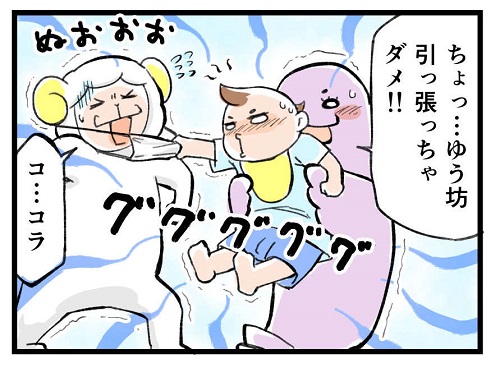 パパはマスク禁止!?1歳息子から着用許可が下りません(泣)|左近寺しゅうりの育児漫画 2020年12月08日 パパはマスク禁止!?1歳息子から着用許可が下りません(泣) まだ新型コロナが猛威を振るう前の話です。 お父さん風邪気味だったのでマスクを付けてました。 顔に何かくっ付けてるのが面白いのかそれとも気に入らないのか、ひたすら剥がそうとしてきます。 しかもぶんぶん振り回して中々返してくれないという…。 遊びでマスクしてるわけじゃあないのよ! マスクの必要性を理解するのはいつになるのか…。 この記事をSHAREする この記事のカテゴリー 子育て幼児
