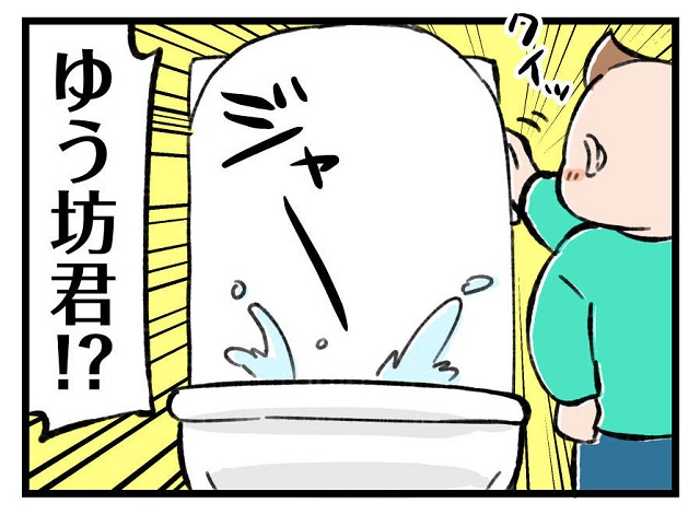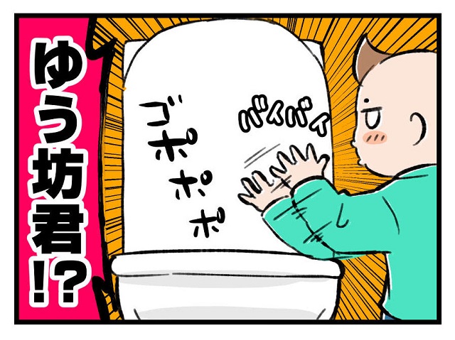 お父さんがトイレに入ってると乱入してくるゆう坊ですが、そのおかげか少しずつトイレ作法を覚えてきた様子。